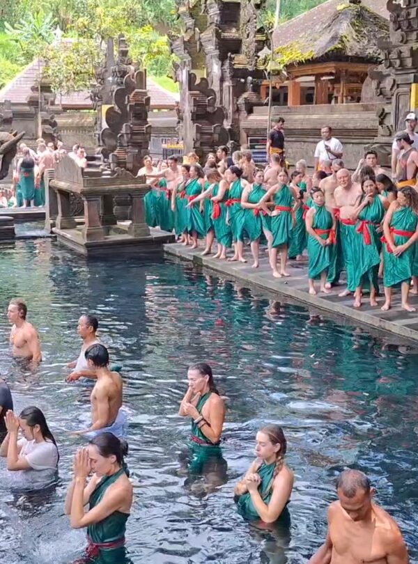 The journey then continues to one selected holy water temple—Sebatu, Tirta Empul, or Mengening Holy Water Temple—depending on preference and conditions. Guests receive guidance on temple etiquette and have the opportunity to observe or participate in a traditional purification ritual, offering insight into Balinese spiritual practices.